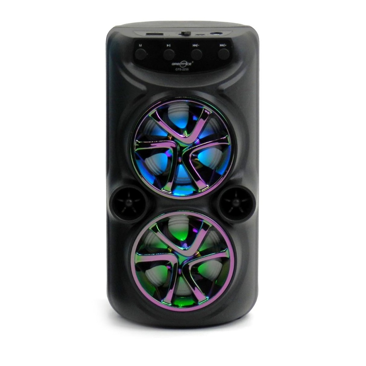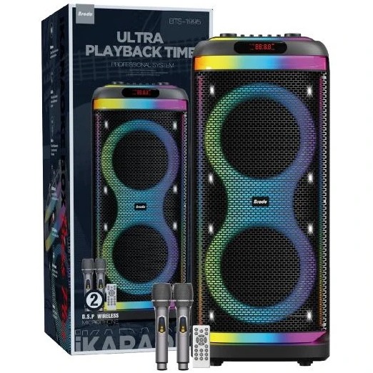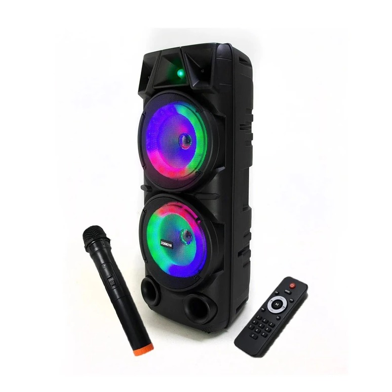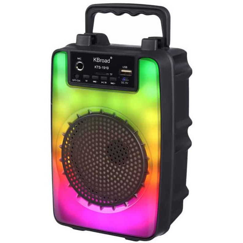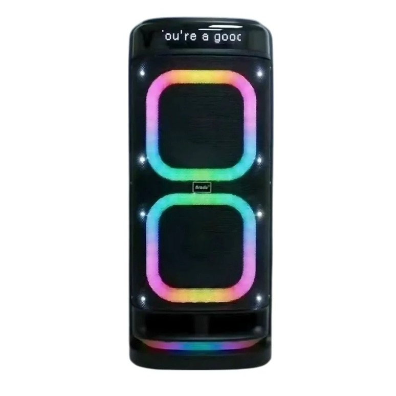 دارای دو بلندگوی 4 اینچی با قدرت پخش بالا، رقص نور RGB، و طراحی شیک با دستهی حمل برای جابهجایی راحت.