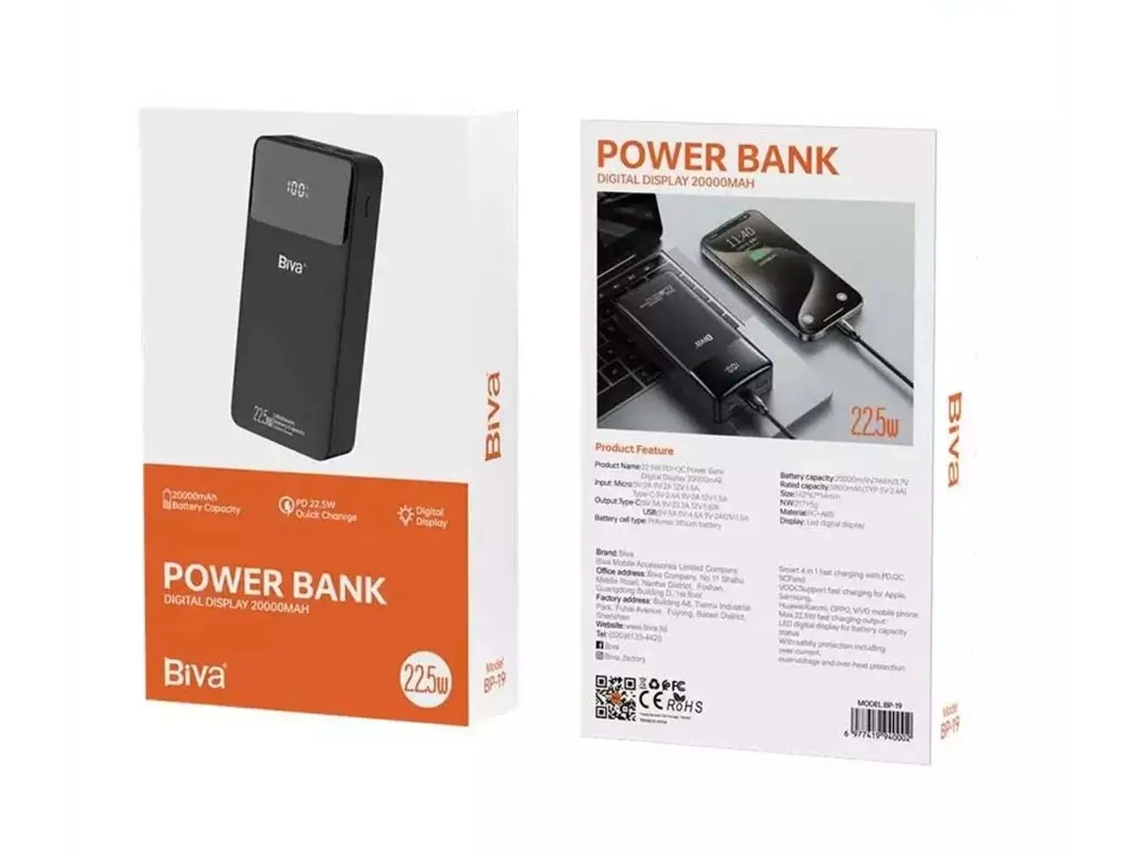پاوربانک بیوا مدل Biva BP-19 ظرفیت 20000 میلی آمپر